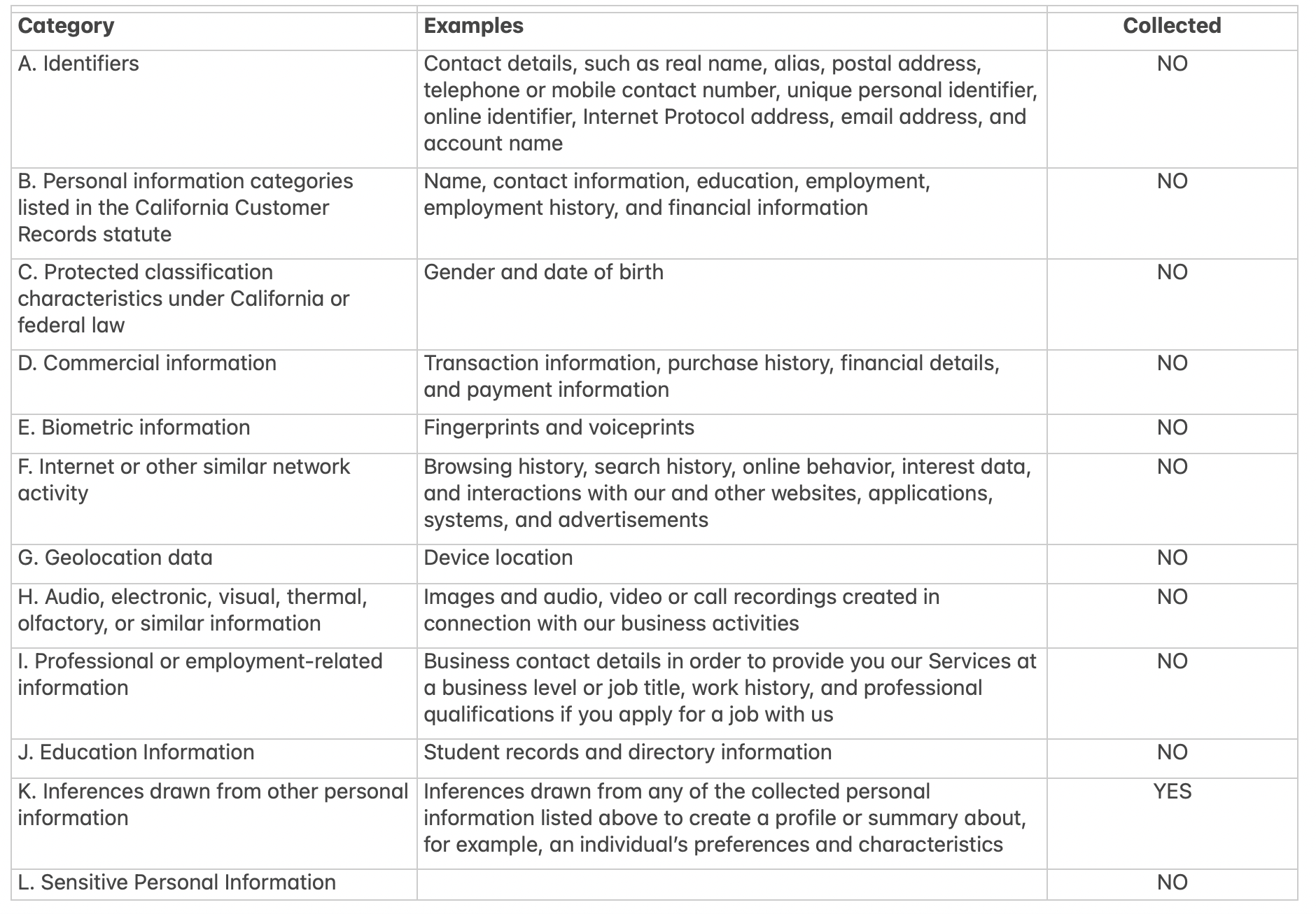 Do we process any sensitive personal information? We do not process sensitive personal information.